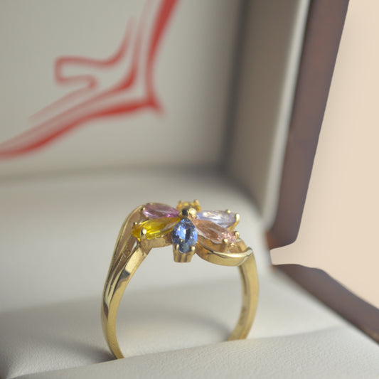 Anillo en forma de flor con zafiros arcoíris en oro de 18 kilates